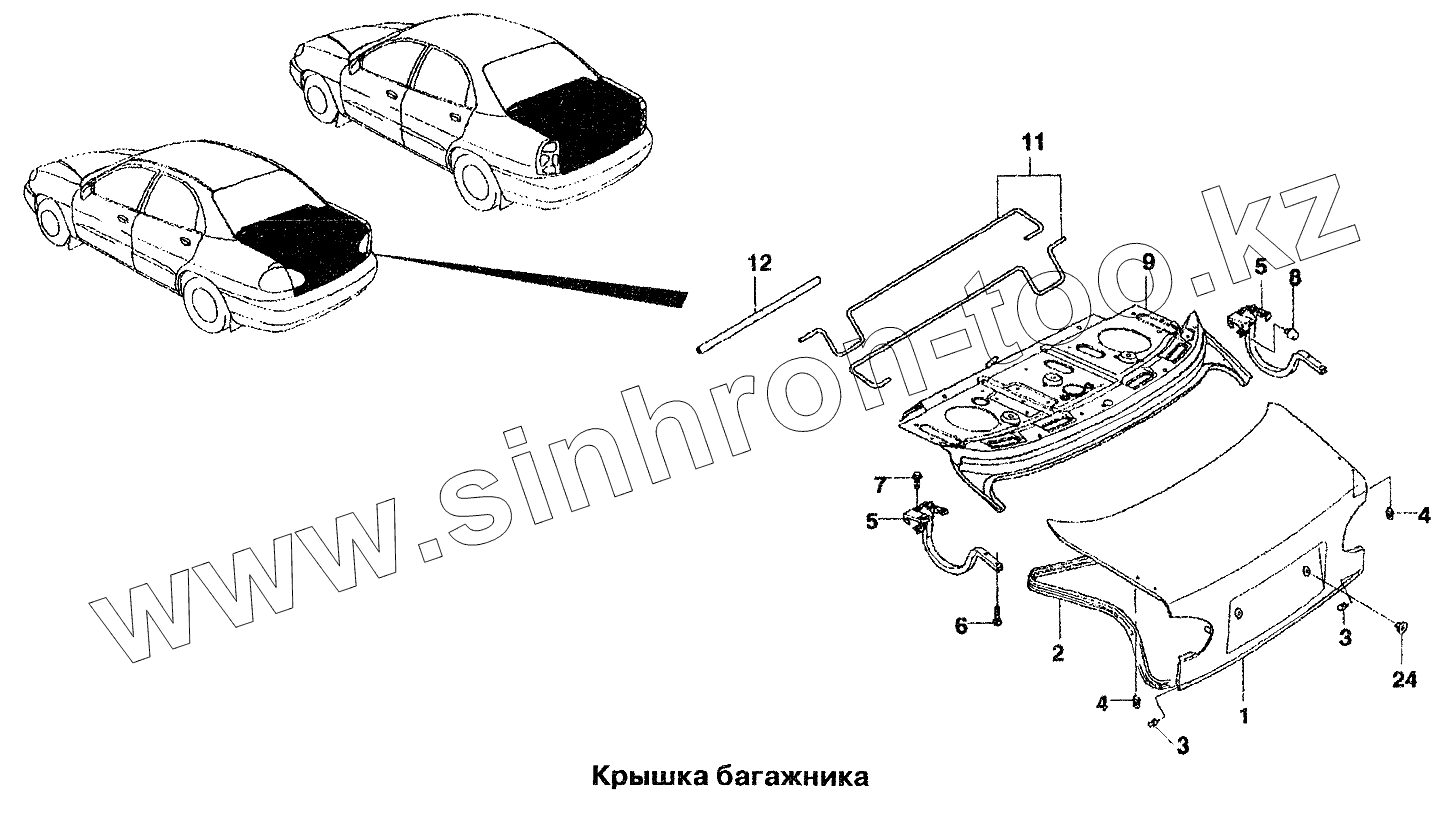 Каталог запасных частей к технике: Daewoo Lanos. Крышка багажника