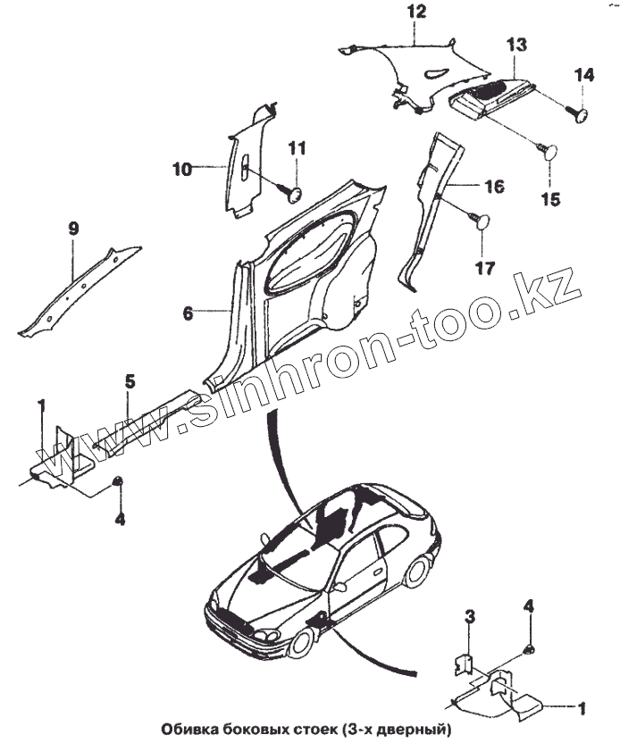 Каталог запасных частей к технике: Daewoo Lanos. Обивка боковых стоек (3-х дверный)
