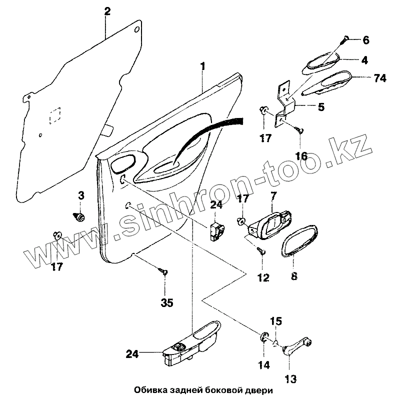 Каталог запасных частей к технике: Daewoo Lanos. Обивка задней боковой двери