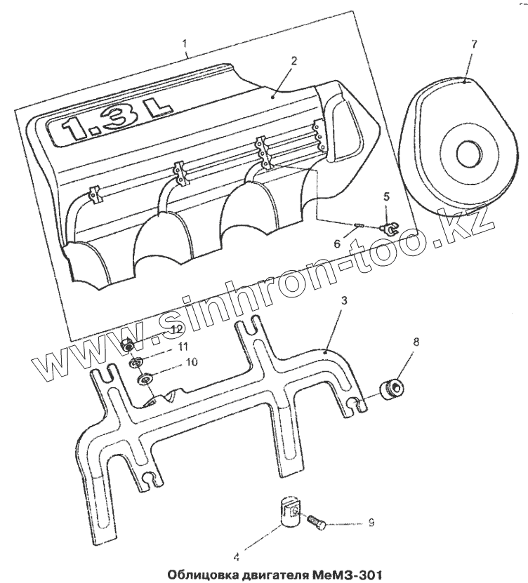 Каталог запасных частей к технике: Daewoo Lanos. Облицовка двигателя МеМЗ-301