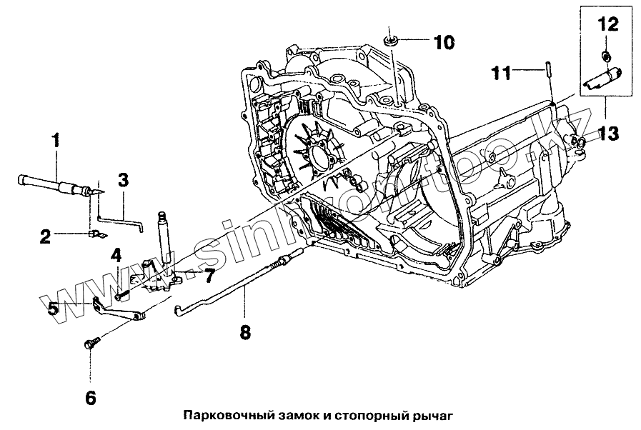 Каталог запасных частей к технике: Daewoo Lanos. Парковочный замок и стопорный рычаг