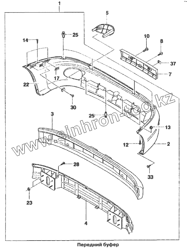 Каталог запасных частей к технике: Daewoo Lanos. Передний буфер