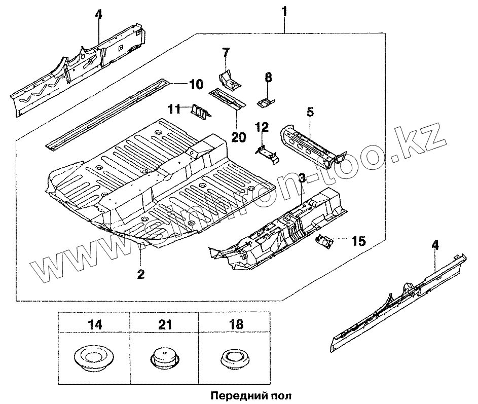 Каталог запасных частей к технике: Daewoo Lanos. Передний пол