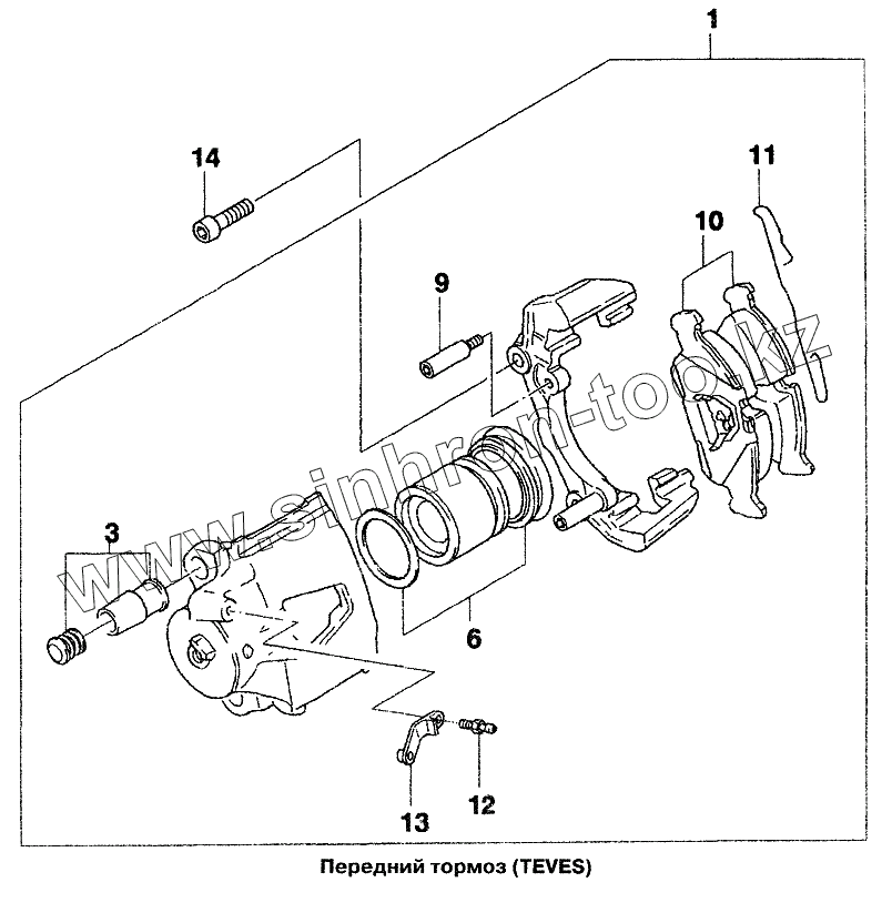 Каталог запасных частей к технике: Daewoo Lanos. Передний тормоз (TEVES)