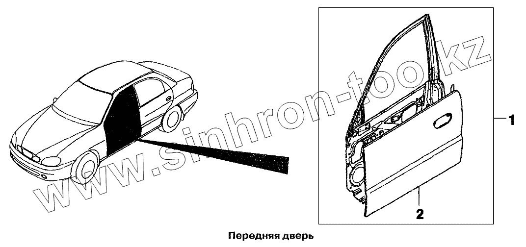 Каталог запасных частей к технике: Daewoo Lanos. Передняя дверь