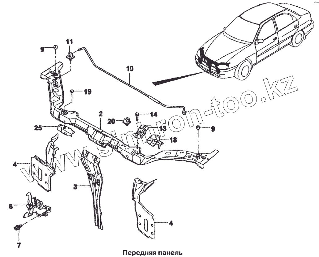 Каталог запасных частей к технике: Daewoo Lanos. Передняя панель