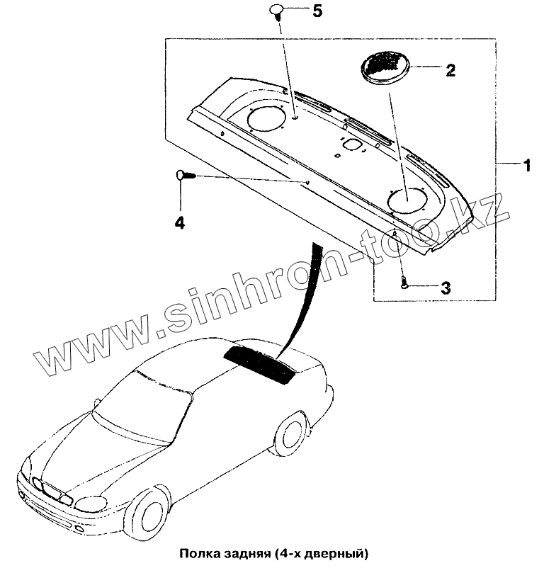Каталог запасных частей к технике: Daewoo Lanos. Полка задняя (4-х дверный)