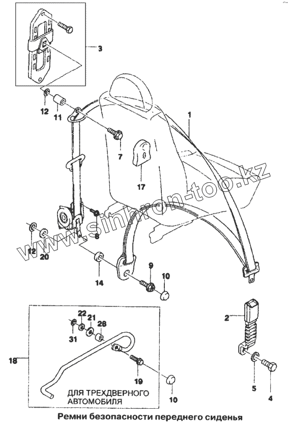 Каталог запасных частей к технике: Daewoo Lanos. Ремни безопасности переднего сиденья