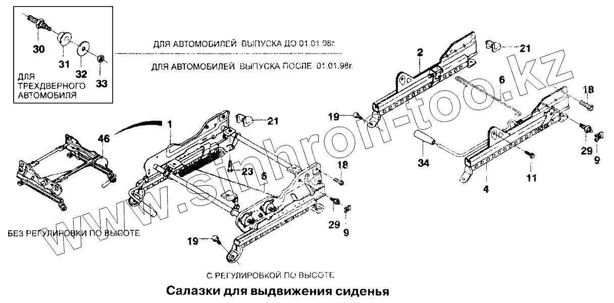 Каталог запасных частей к технике: Daewoo Lanos. Салазки для выдвижения сиденья