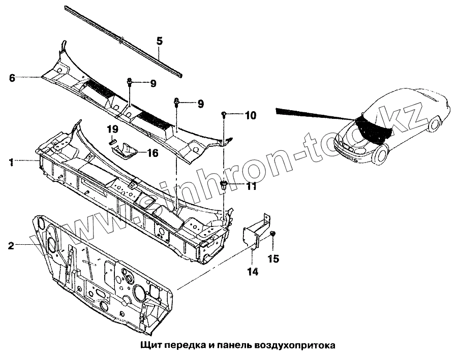 Каталог запасных частей к технике: Daewoo Lanos. Щит передка и панель воздухопритока