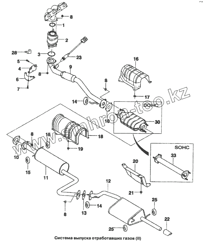 Каталог запасных частей к технике: Daewoo Lanos. Система выпуска отработавших газов (II)