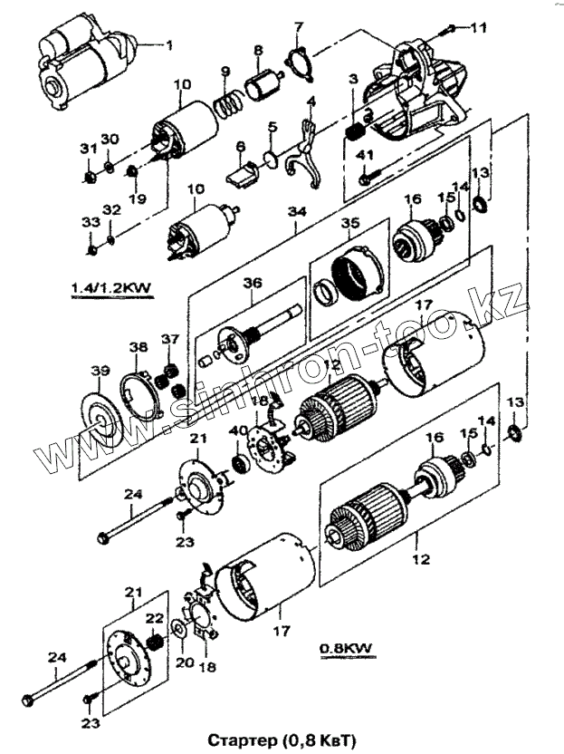 Каталог запасных частей к технике: Daewoo Lanos. Стартер (0,8 кВт)