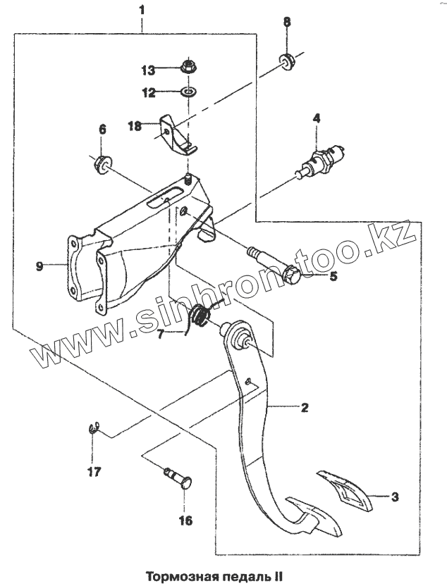 Каталог запасных частей к технике: Daewoo Lanos. Тормозная педаль (II)
