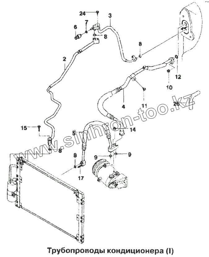 Каталог запасных частей к технике: Daewoo Lanos. Трубопроводы кондиционера (I)