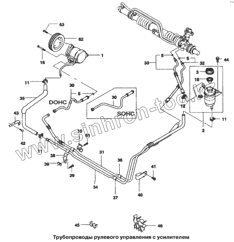 Каталог запасных частей к технике: Daewoo Lanos. Трубопроводы рулевого управления с усилителем