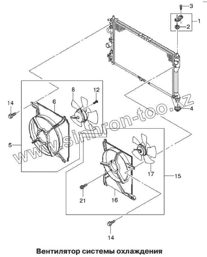 Каталог запасных частей к технике: Daewoo Lanos. Вентилятор системы охлаждения