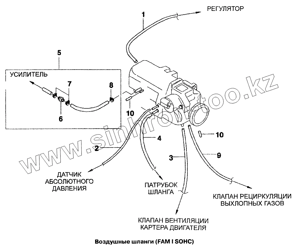Каталог запасных частей к технике: Daewoo Lanos. Воздушные шланги (FAM I SOHC)