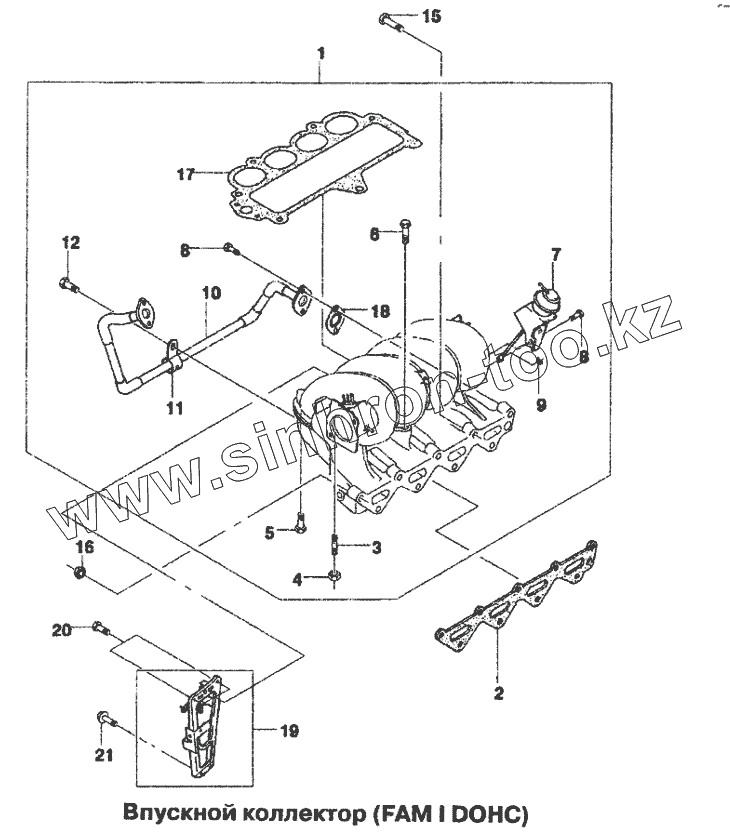 Каталог запасных частей к технике: Daewoo Lanos. Впускной коллектор (FAM I DOHC)