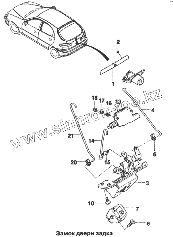 Каталог запасных частей к технике: Daewoo Lanos. Замок двери задка