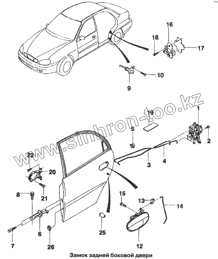 Каталог запасных частей к технике: Daewoo Lanos. Замок задней боковой двери