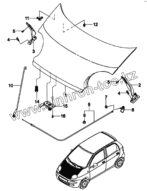 Каталог запасных частей к технике: Daewoo Matiz. Капот