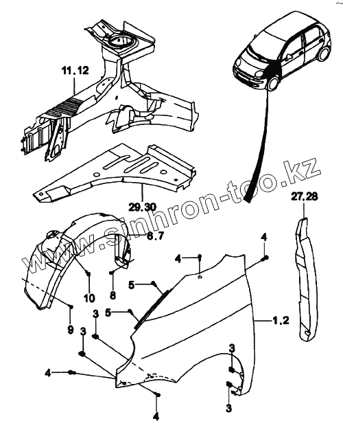 Каталог запасных частей к технике: Daewoo Matiz. Крыло