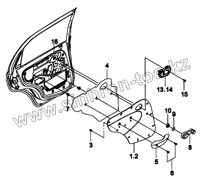 Каталог запасных частей к технике: Daewoo Matiz. Обивка задней двери (I)