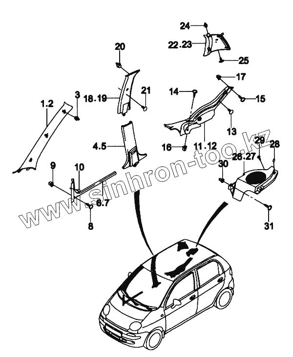 Каталог запасных частей к технике: Daewoo Matiz. Облицовка стоек