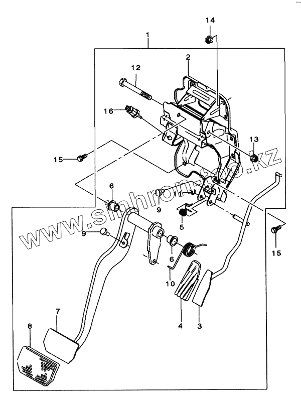 Каталог запасных частей к технике: Daewoo Matiz. Подвеска педалей (автоматическая КПП)