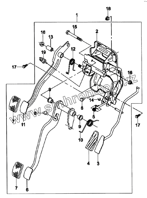 Каталог запасных частей к технике: Daewoo Matiz. Подвеска педалей (механическая КПП)