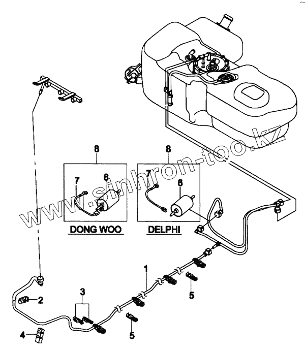 Каталог запасных частей к технике: Daewoo Matiz. Система топливопроводная