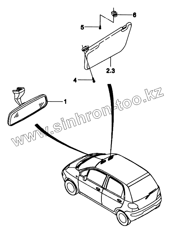 Каталог запасных частей к технике: Daewoo Matiz. Зеркало и козырек солнцезащитный
