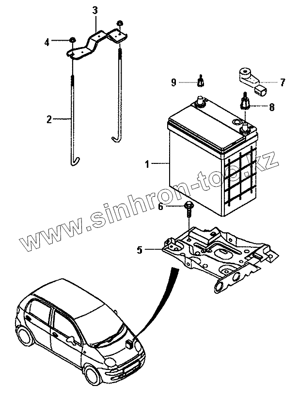 Каталог запасных частей к технике: Daewoo Matiz II. Аккумуляторная батарея