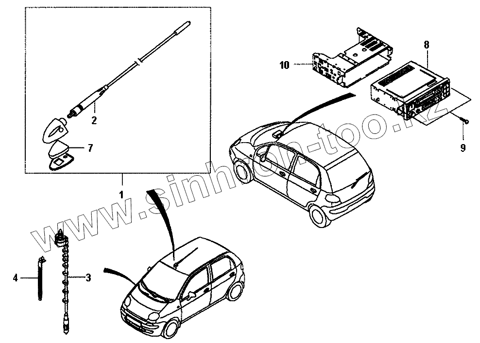 Каталог запасных частей к технике: Daewoo Matiz II. Антенна и аудиосистема