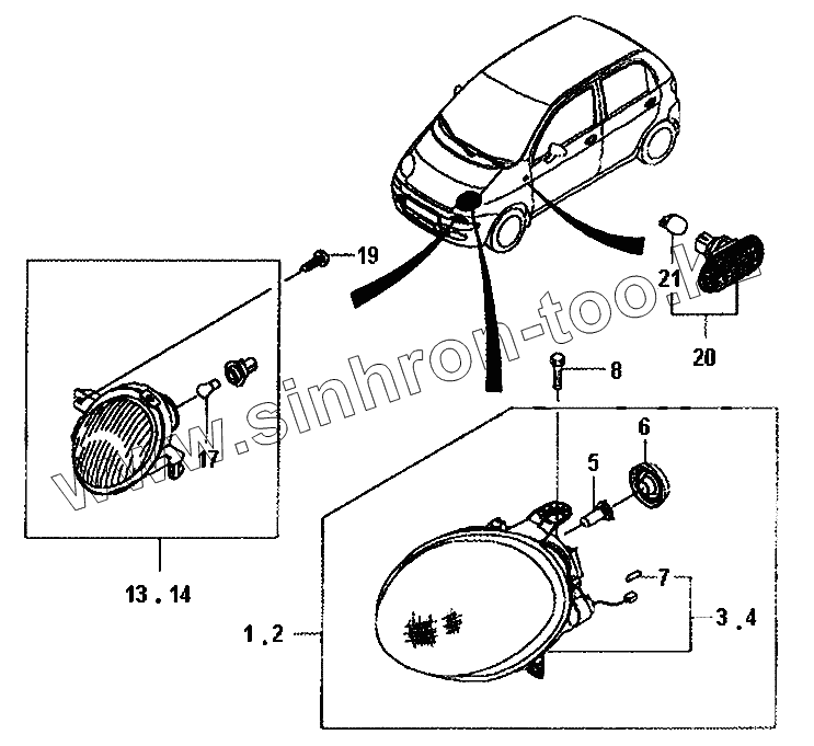 Каталог запасных частей к технике: Daewoo Matiz II. Фара