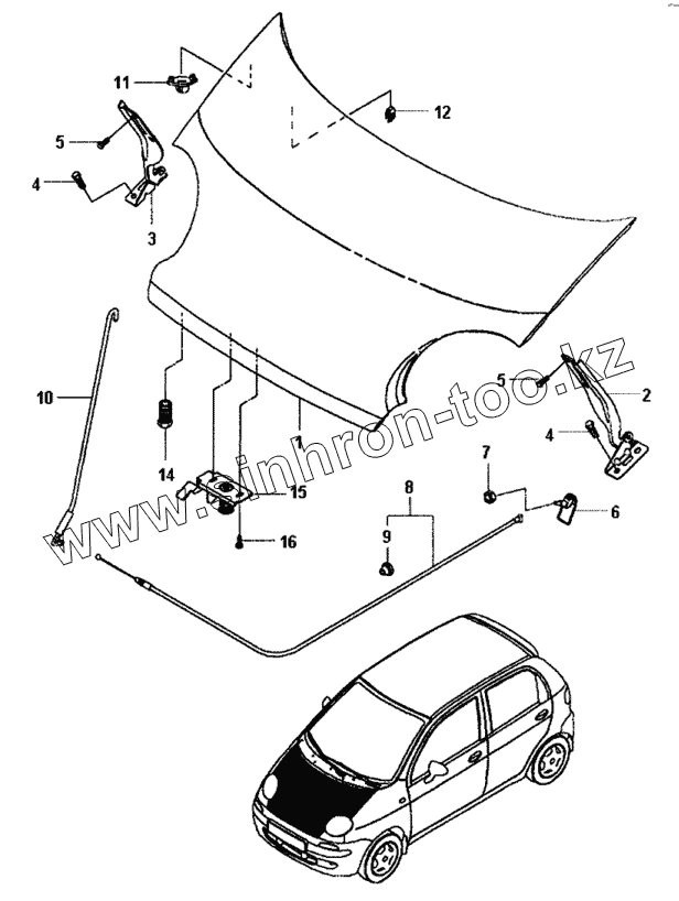 Каталог запасных частей к технике: Daewoo Matiz II. Капот
