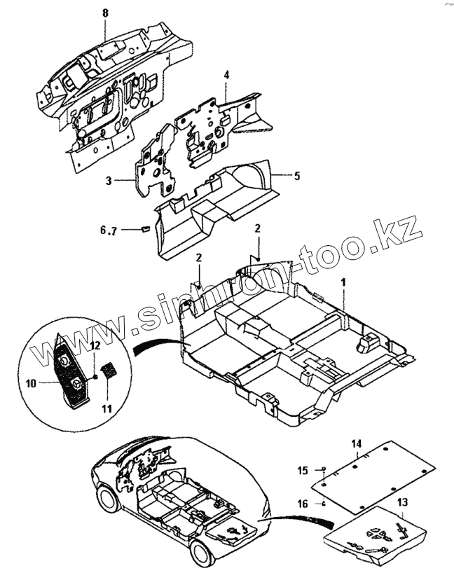 Каталог запасных частей к технике: Daewoo Matiz II. Коврик салона
