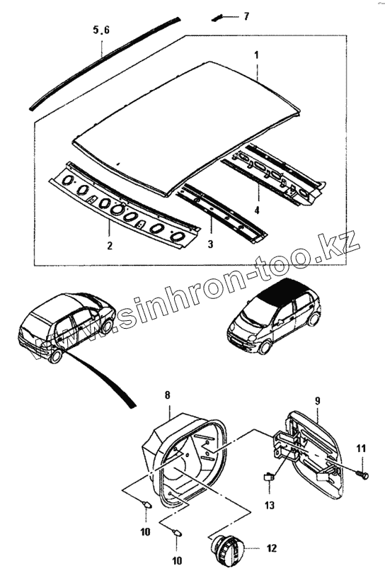 Каталог запасных частей к технике: Daewoo Matiz II. Крышка и топливная горловина