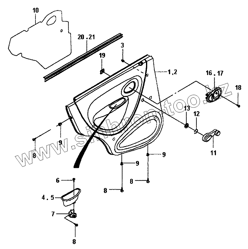 Каталог запасных частей к технике: Daewoo Matiz II. Обшивка задней двери (II)
