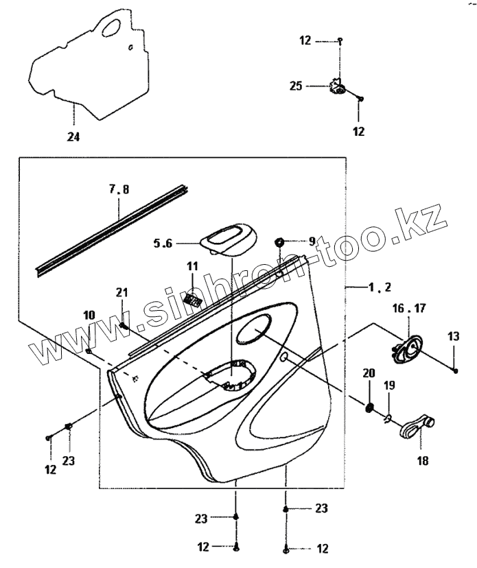 Каталог запасных частей к технике: Daewoo Matiz II. Обшивка задней двери (III)