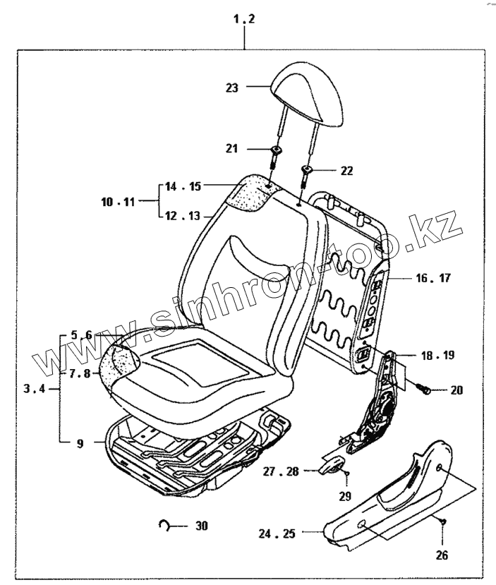 Каталог запасных частей к технике: Daewoo Matiz II. Переднее сидение