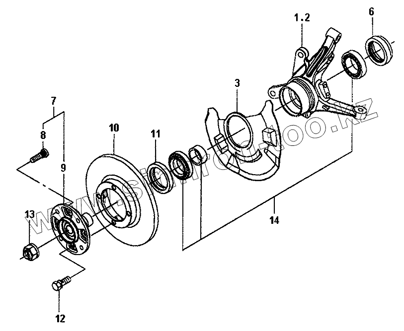 Каталог запасных частей к технике: Daewoo Matiz II. Поворотный кулак и ступица