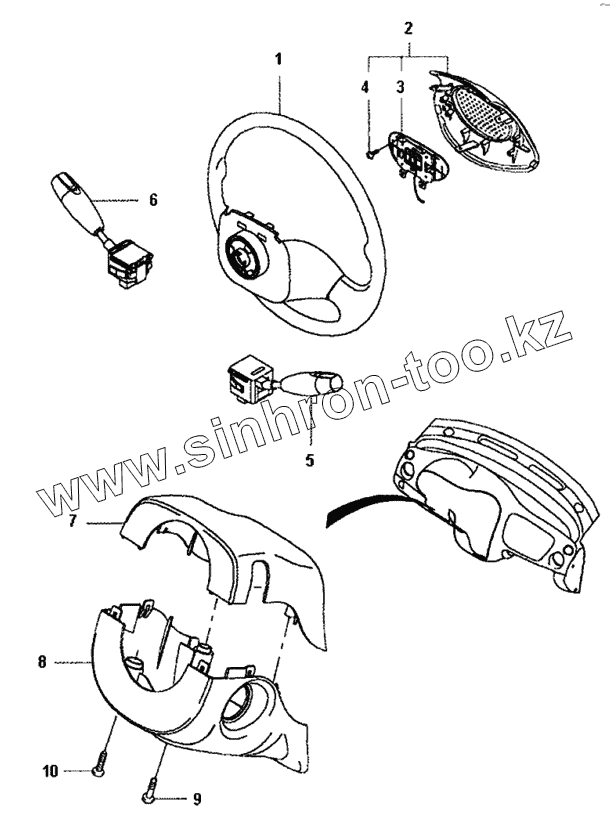 Каталог запасных частей к технике: Daewoo Matiz II. Рулевое колесо и кожух рулевого вала