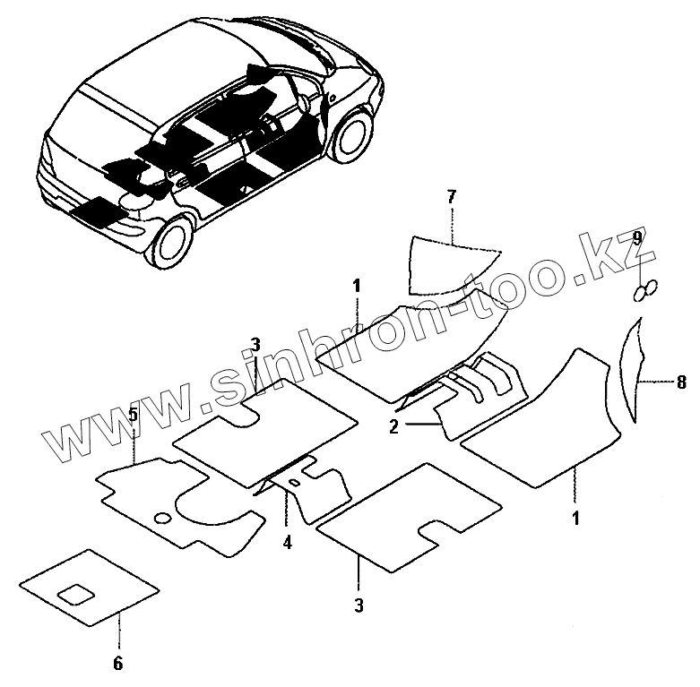 Каталог запасных частей к технике: Daewoo Matiz II. Шумоизоляция