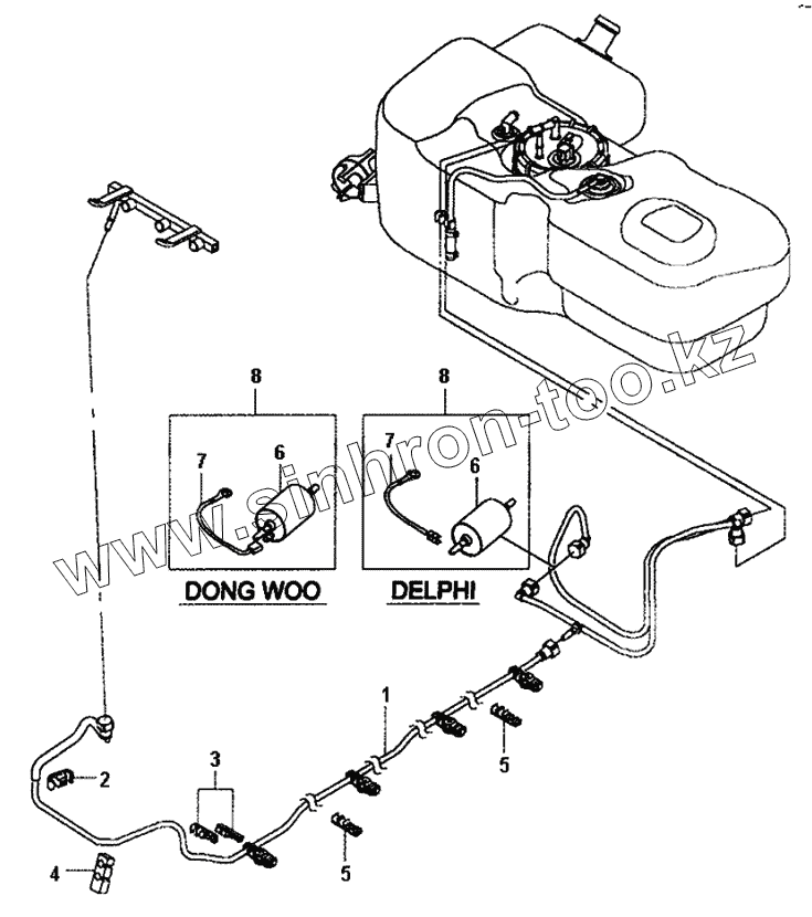 Каталог запасных частей к технике: Daewoo Matiz II. Топливопроводная система