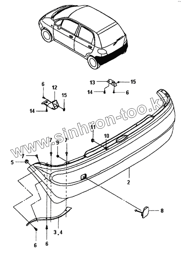 Каталог запасных частей к технике: Daewoo Matiz II. Задний бампер