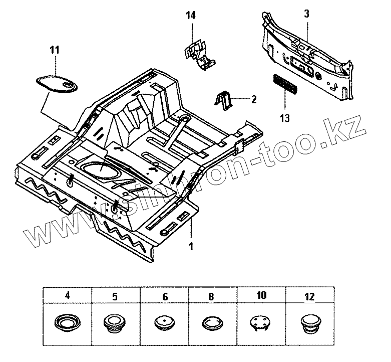 Каталог запасных частей к технике: Daewoo Matiz II. Задняя панель пола