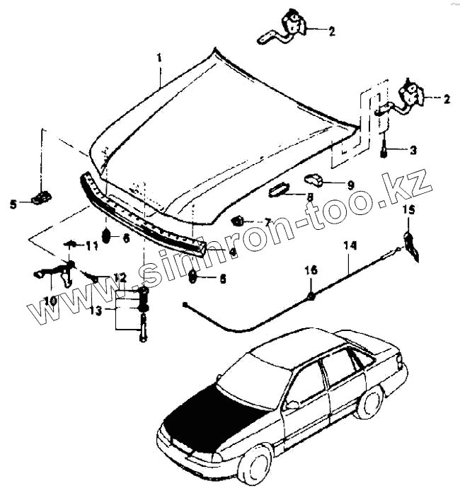 Каталог запасных частей к технике: Daewoo Nexia. Капот