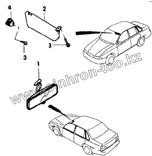 Каталог запасных частей к технике: Daewoo Nexia. Солнцезащитный козырек и зеркало заднего вида