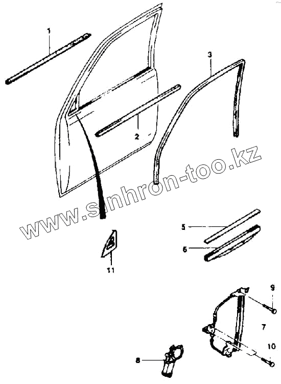 Каталог запасных частей к технике: Daewoo Nexia. Стеклоподъемник передней двери